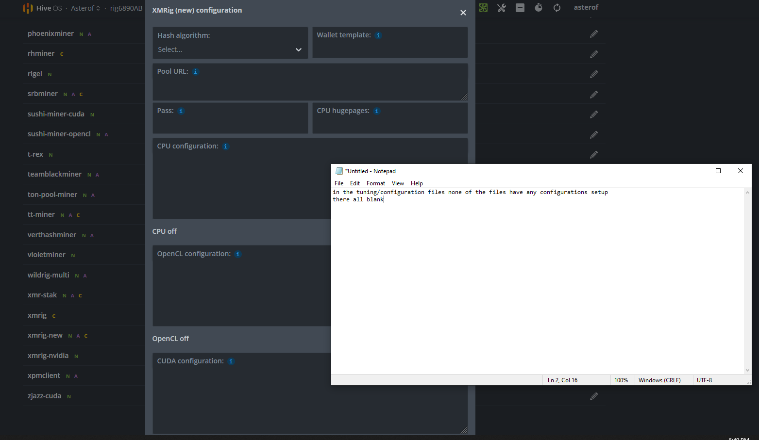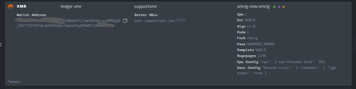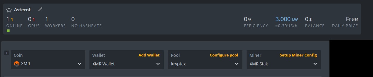 I chose XMR Wallet Pool : kryptex Miner: xmr-stak-randomx only because I could not find
