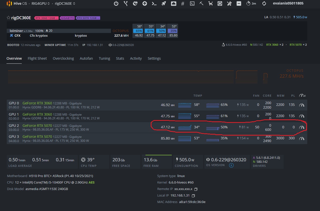 I try to move an another slot ,i have a motherbord asrock h510 ,so i do not use riser ,i update to nvidia driver 580.142 and the same ,now is work like this on pictures below and is stable one day ,in one day i have error i dellete error and work again ,but if i try do modify the oc ,is crash,will be possible to try to update bios for this motherbord and solve this?